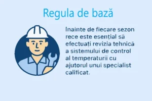 Înainte de fiecare sezon rece este esențial să efectuați revizia tehnică a sistemului de control al temperaturii cu ajutorul unui specialist calificat. Astfel, pot fi identificate din timp eventualele defecțiuni, se prelungește durata de viață a echipamentului și se evită problemele neplăcute în cele mai friguroase zile ale iernii.
