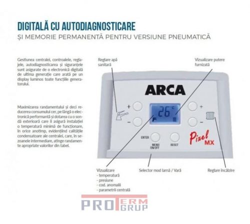Cazan Arca Pixel MX 35/35 PN este un cazan cu condensare cu preamestec miniaturizată cu tehnologie electronică digitală.