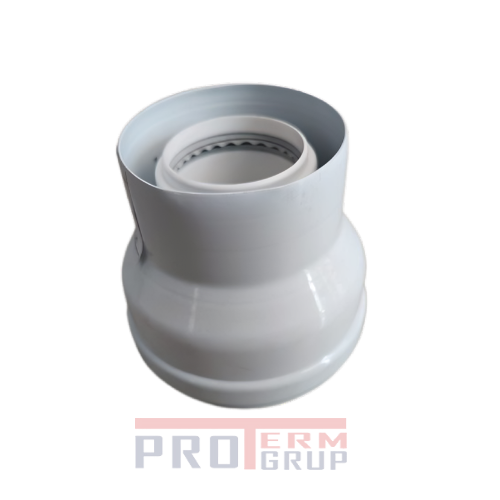 Переход с D = 60 х 100 мм. на D = 80 х 125 мм. конденсационный, предназначен для соединения коаксиальных дымоходных систем разных диаметров. Он используется при установке конденсационных котлов, когда необходимо подключить оборудование с выходом 60 х100 мм к дымоходу диаметром 80 х 125 мм.