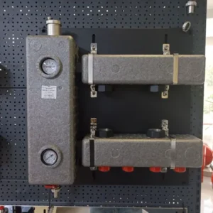 В этом случае поток, проходящий через соответствующие контура, зависит исключительно от характеристик расхода насосов, что позволяет избежать взаимного влияния вследствие их последовательного подключения. В связи с этим на выходе участка гидравлического разделения находятся коллекторы подачи и обратки, к которым могут быть подключены различные вторичные распределительные контуры.