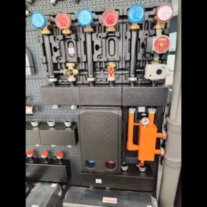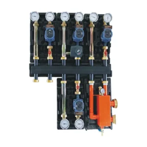 Циркуляционная установка для тепловых солнечных систем. В комплекте с пропиленгликолевым и высокотемпературным циркуляционным насосом для солнечных батарей, обратными клапанами, расходомером, кранами наполнения и слива, шаровыми кранами со встроенными термометрами, специальным предохранительным клапаном для солнечных систем с манометром и соединением для расширительного бака, деаэраторной группой. Теплоизоляция из черного ППС плотностью 40 кг/м³